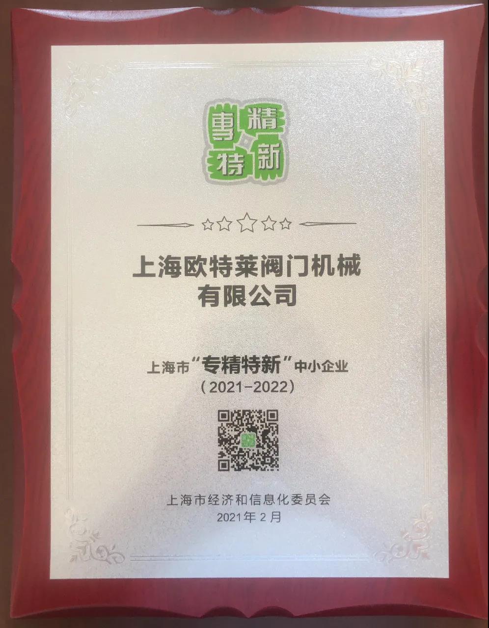 上海歐特萊閥門榮獲上海市專精特新企業及英國WRAS認證!